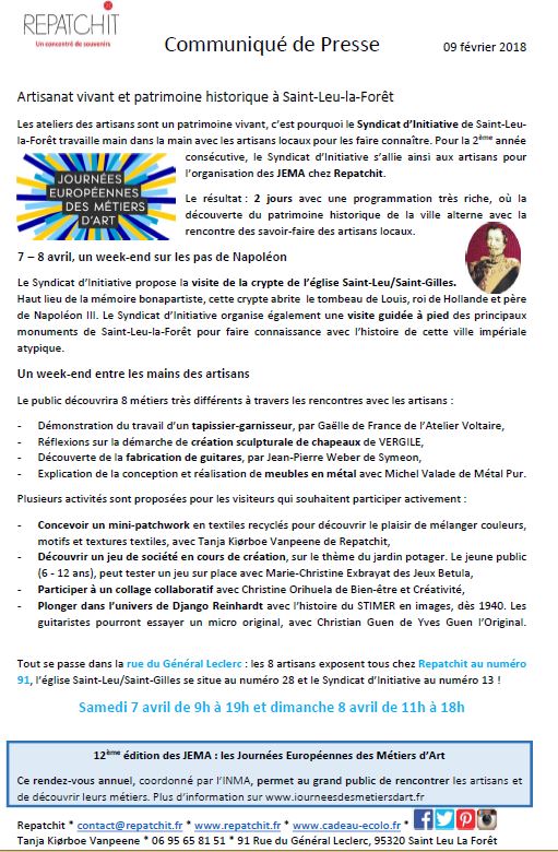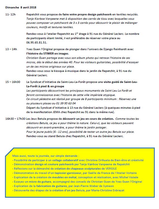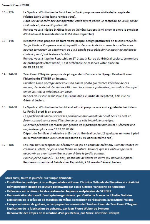Le Syndicat d’Initiative propose également des visites guidées de Saint-Leu-la-Forêt à pied et en groupe le samedi et dimanche après-midi. Les participants découvriront les principaux monuments et feront connaissance avec l’histoire de cette ville impériale atypique. Ce circuit pédestre se fera par groupes de 8 participants minimum : Réservez vos places au 01 39 95 63 04.