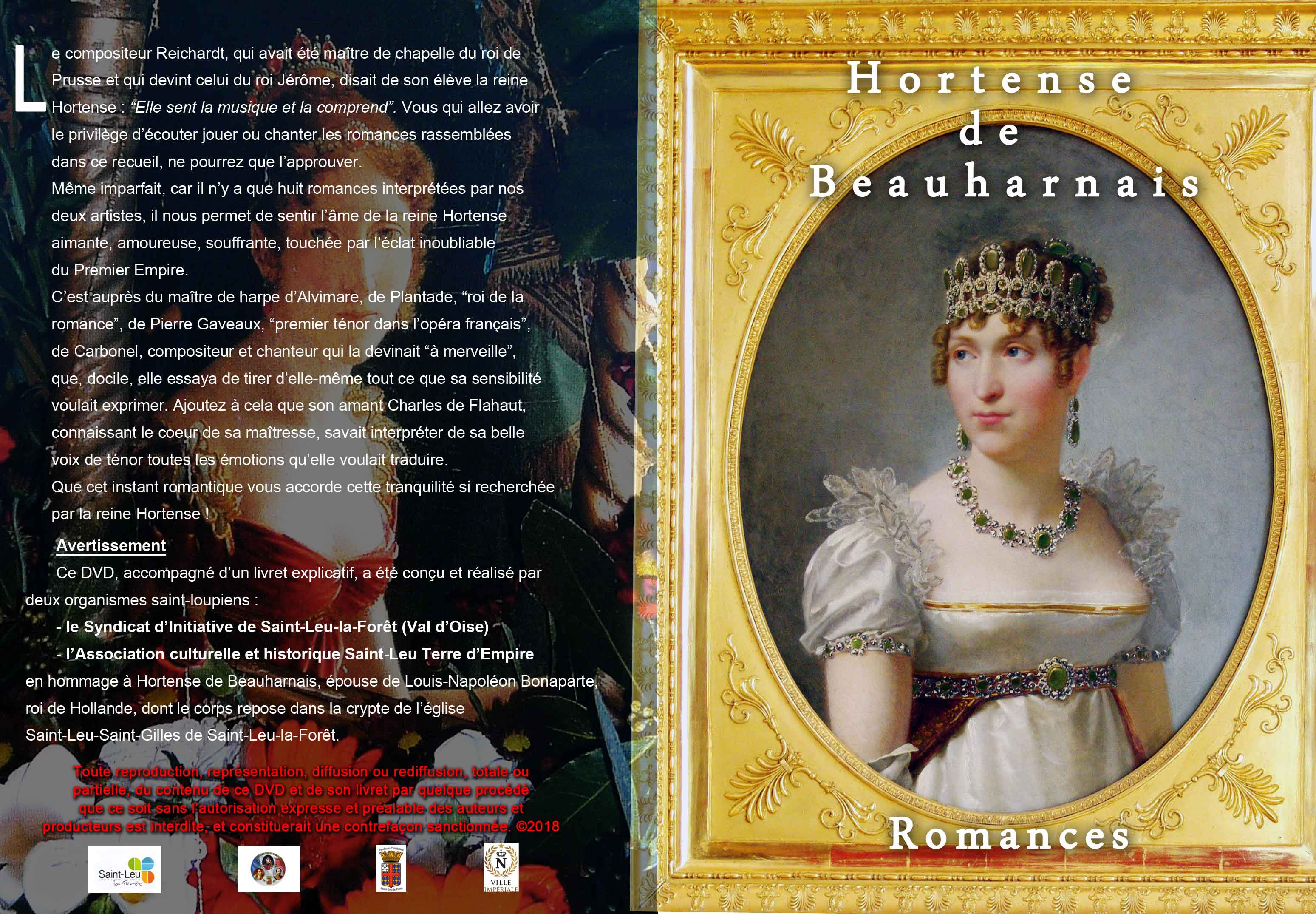 Le dvd des Romances de la reine Hortense, vendu au local du Syndicat d initiative au prix de 25€, est un inédit musical patrimonial important puisqu’il s’agit de l’unique enregistrement existant sur le marché et que sa réalisation à Saint Leu par deux organismes locaux de bénévoles, l’association Saint Leu Terre d’Empire et le Syndicat d’Initiative, traduit la volonté de poursuivre plus que jamais les actions culturelles et historiques au sein du réseau des villes impériales.