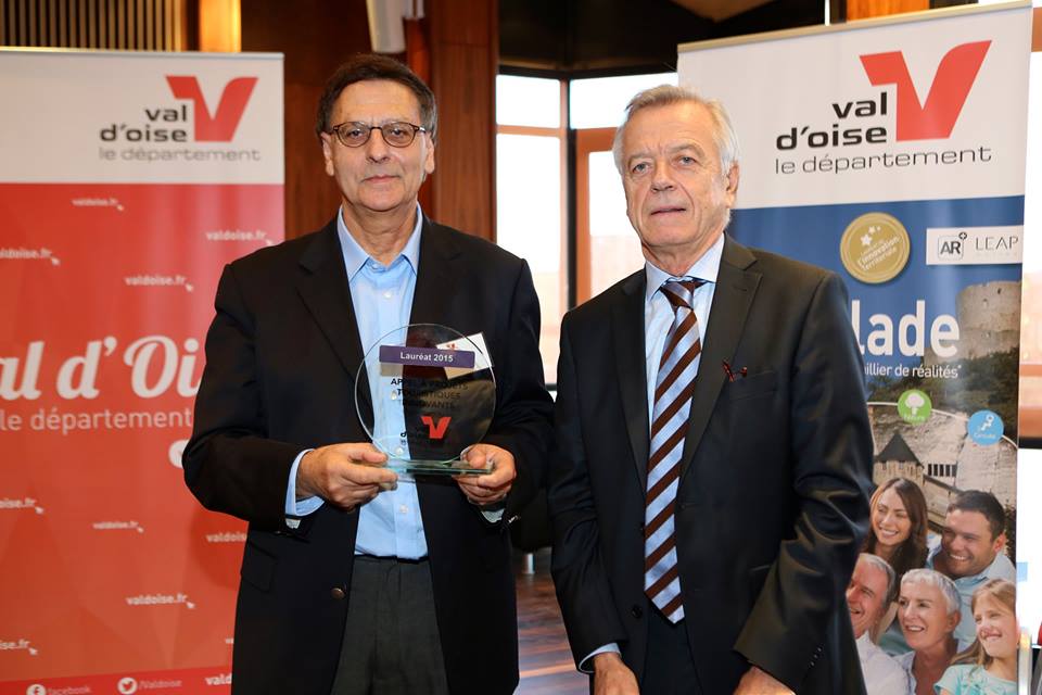 Roland Azoulay, secrétaire général du Syndicat d'initiative, a reçu, des mains de Gérard Lambert-Motte et au nom du Syndicat d’initiative, le trophée pour la création d’un guide touristique audio et vidéo du patrimoine de Saint-Leu-la-Forêt. (voir projet innovant du SI)